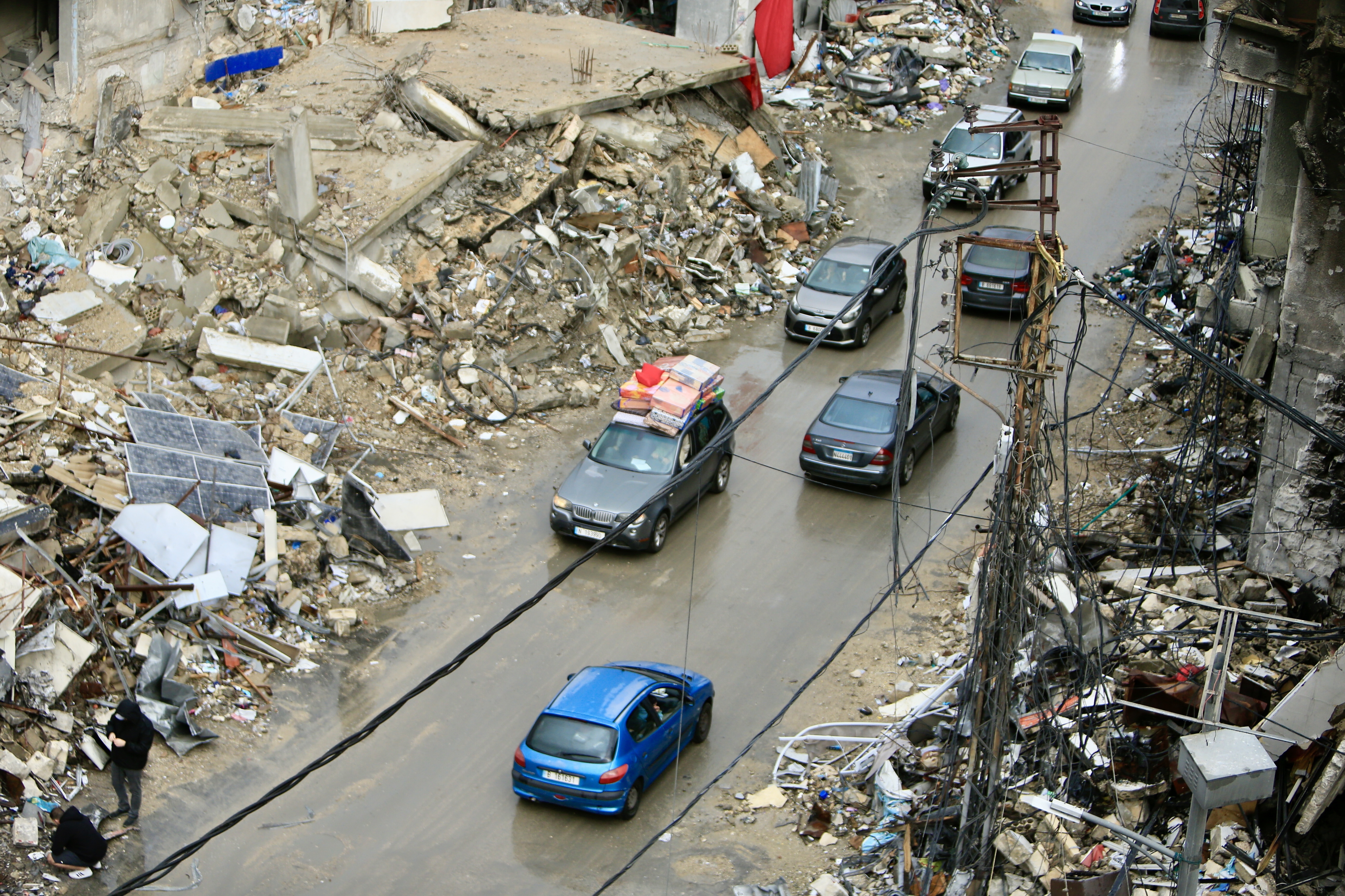 11月27日,在黎巴嫩南部,东说念主们驾车复返家园。新华社 发