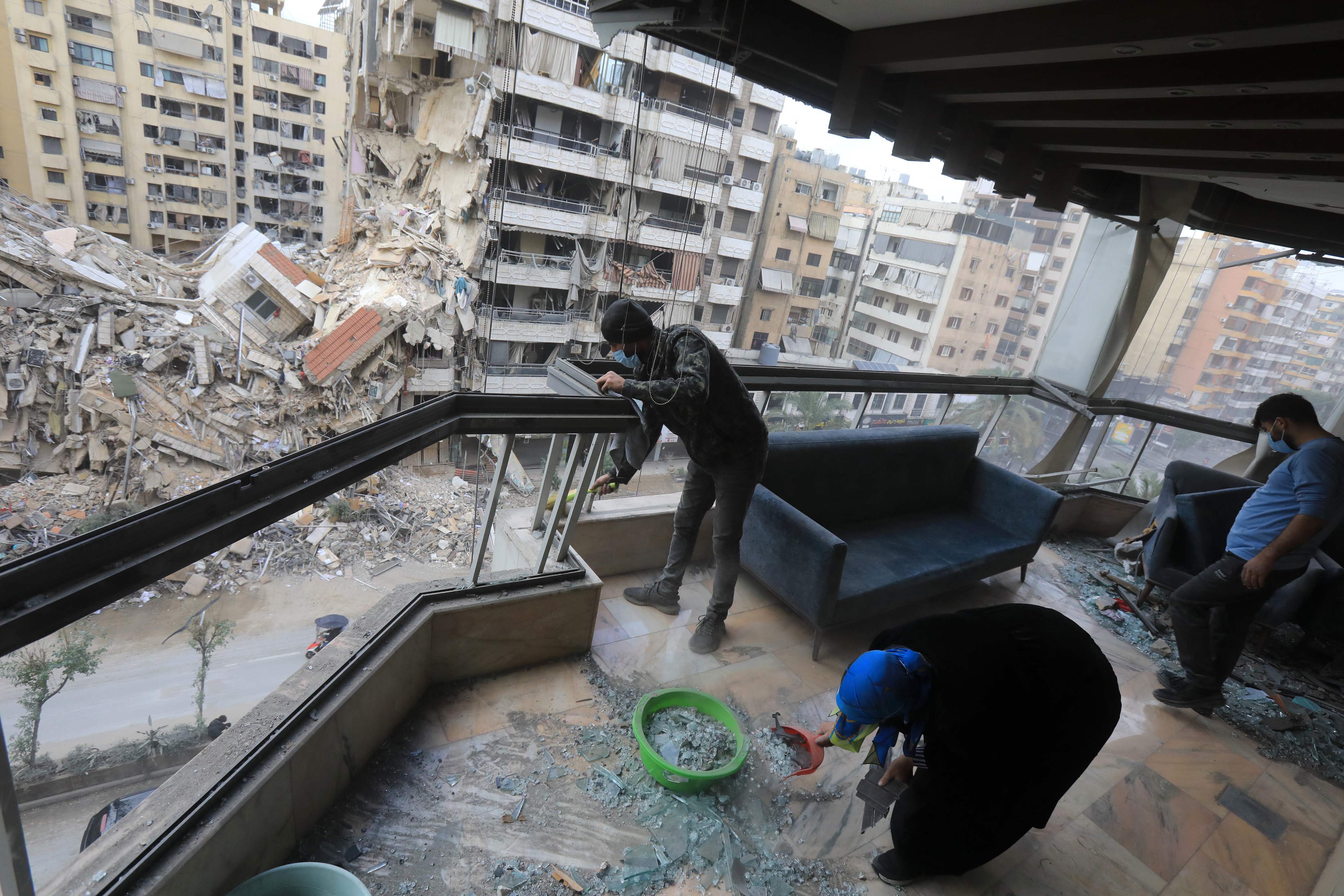 11月27日,东说念主们在黎巴嫩齐门贝鲁特南郊算帐受损的住处。新华社 发